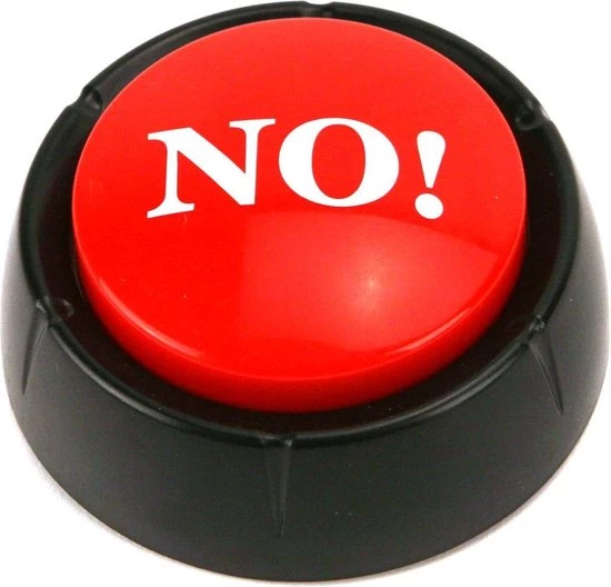 Laat iedereen duidelijk weten dat jij ‘Nee’ zegt met deze grappigeZoomerknop! Druk hem in en de knop laat op verschillende manier weten dat het absoluut ‘nee’ is!