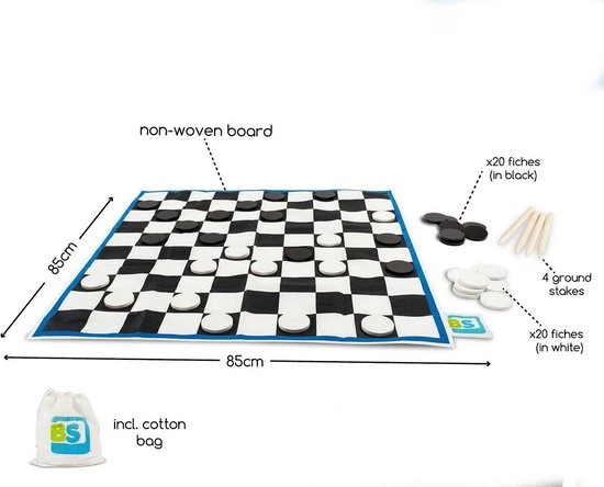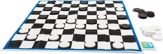 Dit extra grote damspel bestaat uit een bord met houten damschijven. Met dit spel is de overwinning op je tegenstander nog groter!
