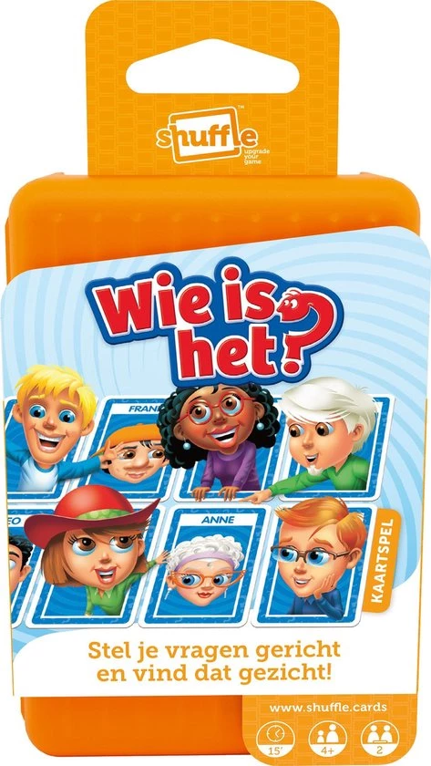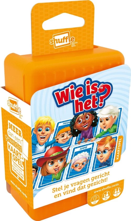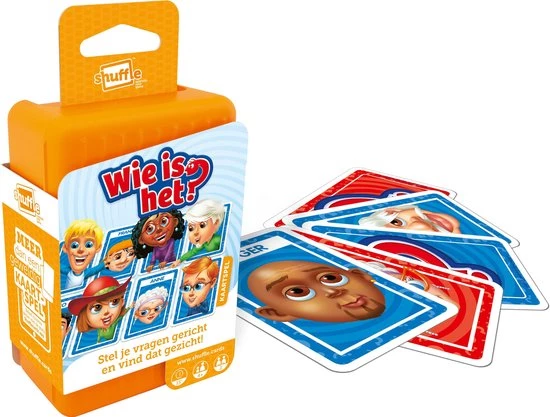 Bij Shuffle Wie is het? Moet je raden wie de andere speler in handen heeft door slimme vragen te stellen over het uiterlijk van zijn of haar personage. Is het een vrouw? Draagt ze een bril? Heeft hij bruin haar? Raad wie er op de Mysteriekaart van de andere speler staat voor hij of zij die van jou raadt!