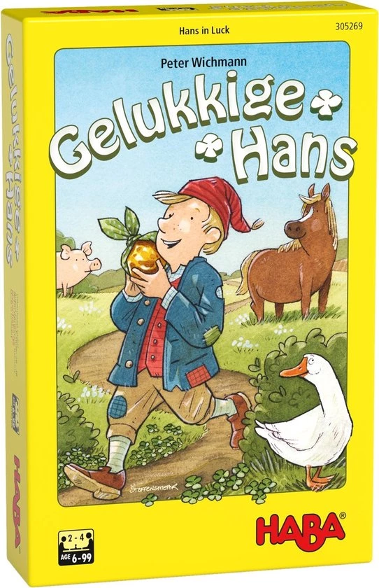 Bij dobbelspel Gelukkige Hans beslissen de dobbelstenen beslissen hoeveel plaatjes de spelers tegen andere mogen ruilen. Maar opgelet: hier komt het er niet op aan de grootste rijkdom te vergaren, maar wel het grote geluk te vinden. Wie als eerste door slim te ruilen het klavertjevier op de kop tikt, is de winnaar.