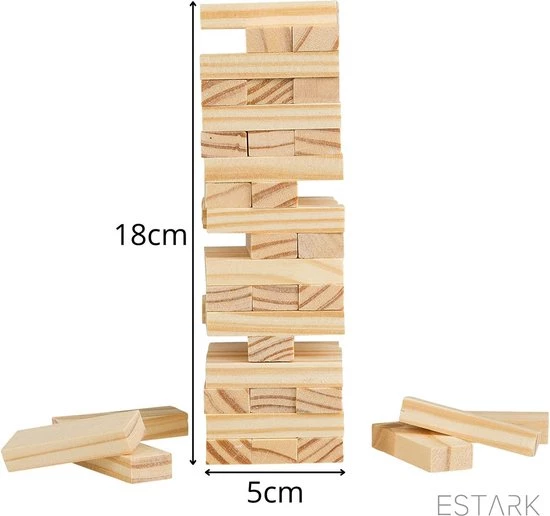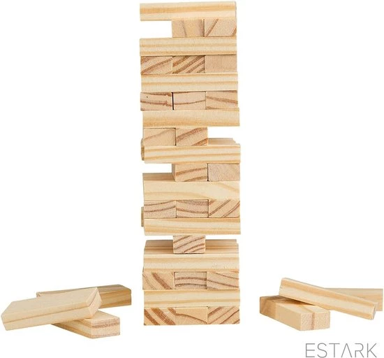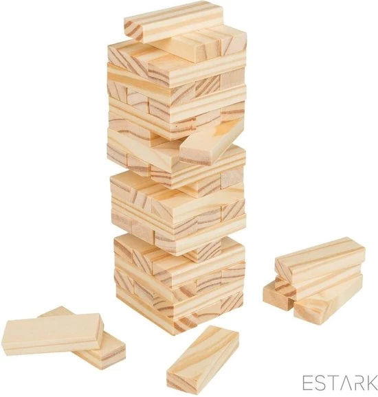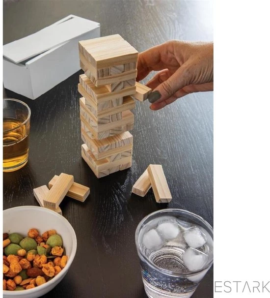 Bij dit spannende spel is het de bedoeling je behendigheid te testen! Haal om de beurt voorzichtig een blokje uit de toren, en leg die bovenop. Maar pas op dat de toren niet omvalt! Hoe langer je bezig bent, hoe groter de uitdaging wordt. Wie laat de toren vallen en wie wint er?