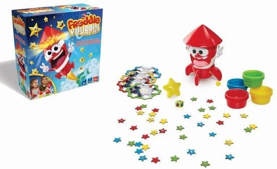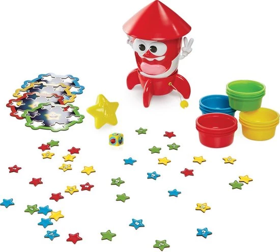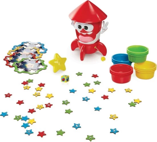 Doe de sterren in de kop van Freddie Vuurpijl en trek aan het lont. Nu gooi je om de beurt de dobbelsteen en kijk op welke kleur hij landt. Deze kleur wijst aan welk bakje je neer mag zetten. Zet ze rond Freddie Vuurpijl neer en als het tijd is vliegt Freddie Vuurpijl de lucht in en schieten de sterren alle kanten op! Vang jij jouw kleur in de bakjes op? De bedoeling is om jouw sterrenhemel zo snel mogelijk verzameld te hebben, dan win je het spel!