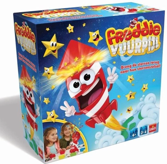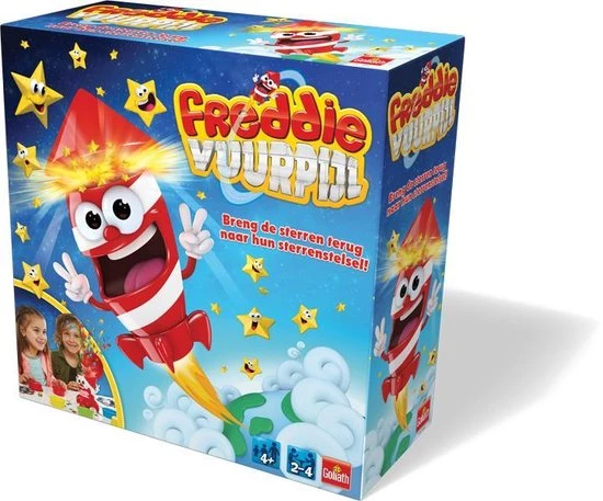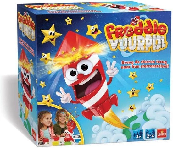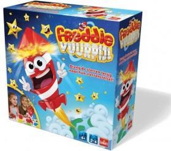 Freddie is een vuurpijl met een lang lontje! Maar hoe vaker jij aan zijn lontje trekt, hoe korter hij wordt! En als Freddie Vuurpijl zijn lontje op is, dan regent vallende sterren! Freddie Vuurpijl schiet ze de lucht in dus pas op! Probeer dan jouw sterrenhemel compleet te maken door de vallende sterren in jouw bakje op te vangen!