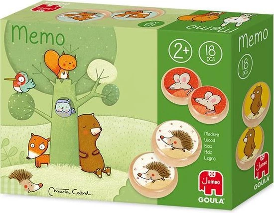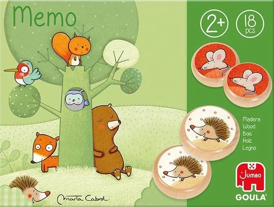 Prachtig geillustreede houten memorie spel van het merk Goula. Memoryspel voor de allerjongsten, met leuke bosdieren. 18 hoogwaardige ronde houten stukken die prettig in de hand liggen. Afmetingen: ø4,2×1,2 cm