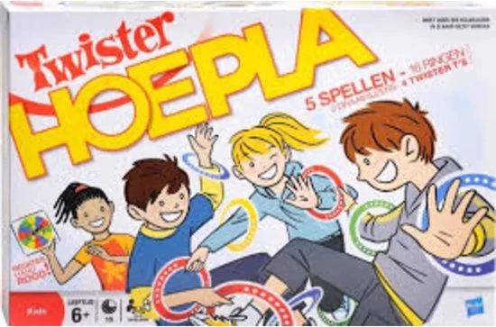 Wring je in alle mogelijke bochten met dit Twister Hoepla actiespel! Probeer de 5 verschillende spellen uit en tracht vooral je evenwicht niet te verliezen! Super hilarisch en voor alle leeftijden!