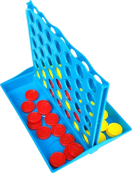 dit spel kun je spelen met 2 personen. Ieder persoon heeft een eigen kleur, waarmee hij/zij probeert 4 stenen op een rij te leggen. Wees creatief en maak de rijen horizontaal, verticaal of diagonaal. Dit spel is superleuk om thuis, bij vrienden of in de auto te spelen. Ben jij de eerste die 4 steentjes naast elkaar weet te krijgen?