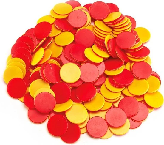 Dubbelzijdige rekenfiches met 2 kleuren: rood en geel. Geschikt voor verschillende rekenspelletjes, waaronder een aantal werkbladen van FlexJuf.