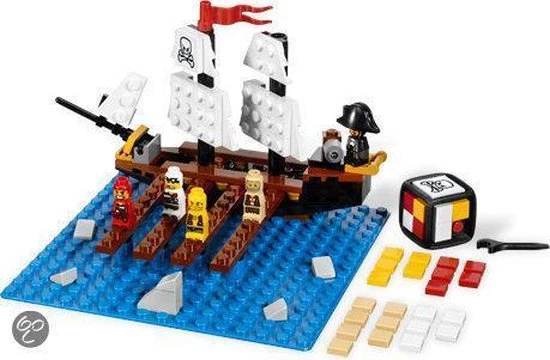De piratenkapitein heeft wat personeel betrapt op het stelen van de schat. Nu laat hij ze de LEGO Prirate Plank aflopen. Sla de andere spelers van de plank en voer ze aan de haaien voordat ze hetzelfde bij jou doen! De laatste piraat die overblijft heeft gewonnen! Een spannend spel voor 2 tot 4 speler.