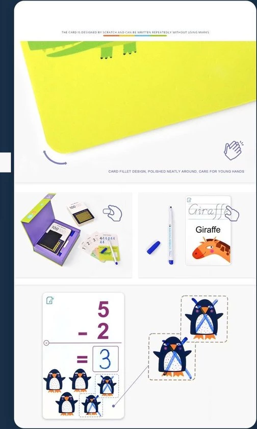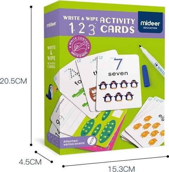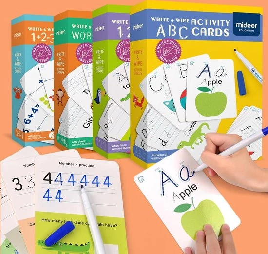 Dit Write-On Wipe-Off-kaartspel heeft herbruikbare oppervlakken, zodat kinderen gemakkelijk hun werk kunnen oefenen, het weg kunnen vegen en opnieuw kunnen beginnen!