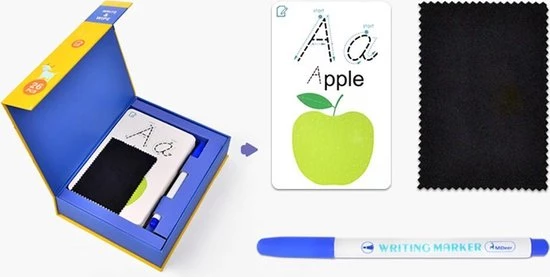 Met de meegeleverde droge uitwisbare stift zullen kinderen de letters en Engelse woordjes onder de knie krijgen.