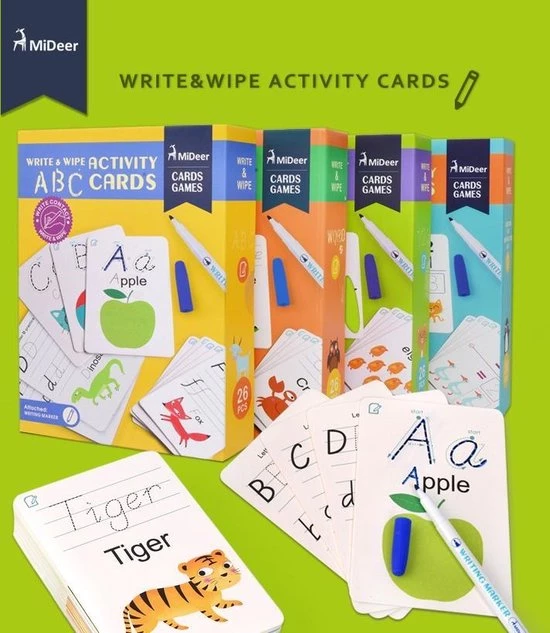 Met 26 kaarten in de doos is er genoeg ruimte voor kinderen om te schrijven, wat herhaling en succes aanmoedigt.