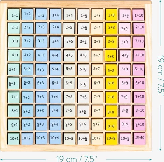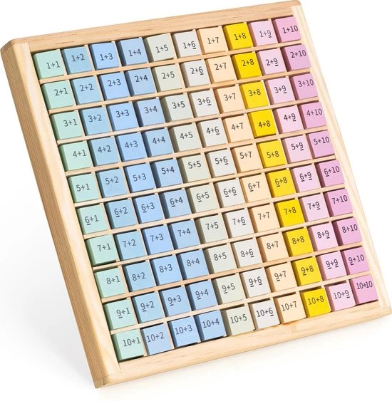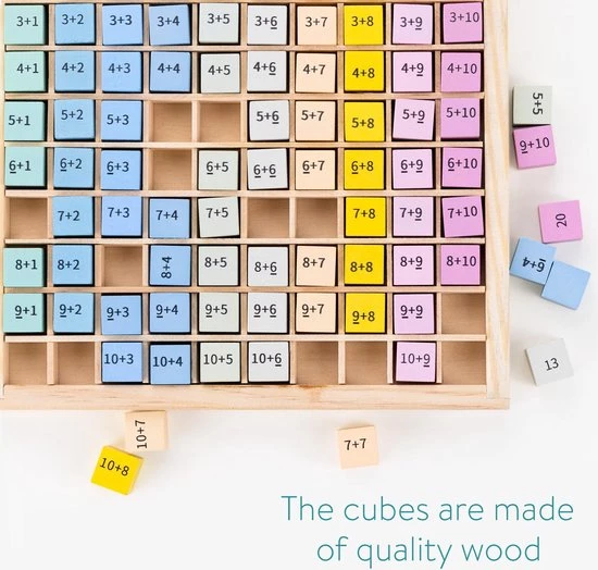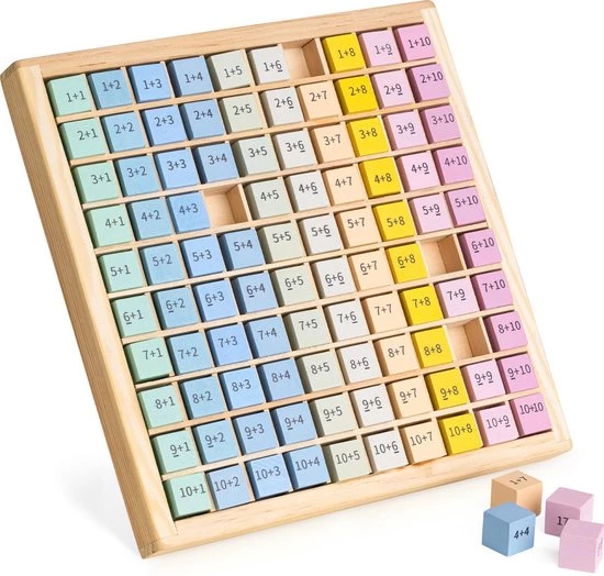 - Met de honderd houten blokjes leren je kinderen de sommen van 1 tot en met 10 kennen. Ideaal als ze naar de basisschool gaan en beginnen met rekenen. De rekensommen staan op de voorkant en de antwoorden op de achterkant.