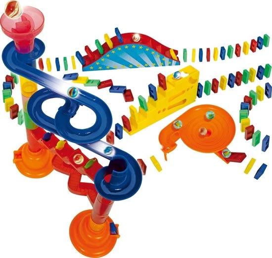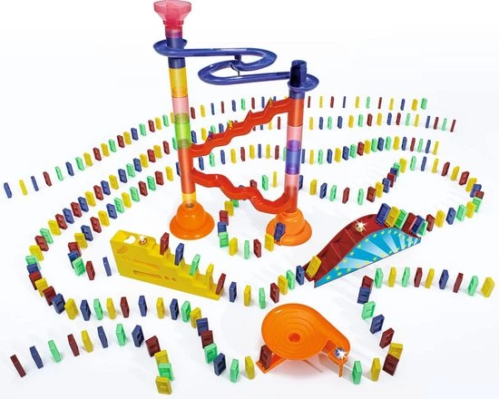 Zet een geweldige koers uit met de 200 dominostenen en talloze accessoires. Begin de Mega Run bij de knikkerbaan en bouw een superleuke domino-koers met de dominostenen, accessoires en obstakels die zijn meegeleverd!