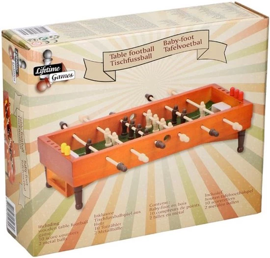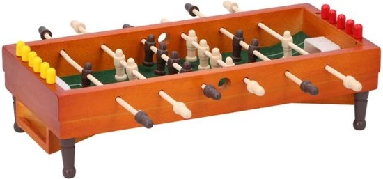 - Houten tafelvoetbalspel incl. 10 scopretellers en 2 metalen balletjes