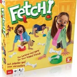Fetch! is het dolgekke spel voor viervoeters vanaf 4 jaar ? Race op handen en voeten om als eerste met je hondenmasker je botjes op te scheppen en naar je kom te brengen! Waf!