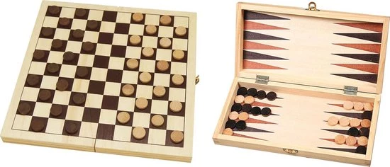 Buffalo Dam- en Backgammonset in mooie houten koffer. Inclusief houten speelstenen.