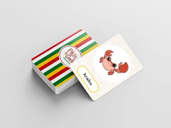 In deze doos zitten 50 kaarten met dierennamen in het Surinaams. Met deze speel- en leerkaarten wordt nieuwe woordjes leren een feest! Door op een leuke manier met Surinaamse woordjes bezig te zijn, vergroot je spelenderwijs de woordenschat. De afbeeldingen op de kaarten helpen om de dierennamen sneller en makkelijker te onthouden. De ideale manier om snel Surinaams te spreken!