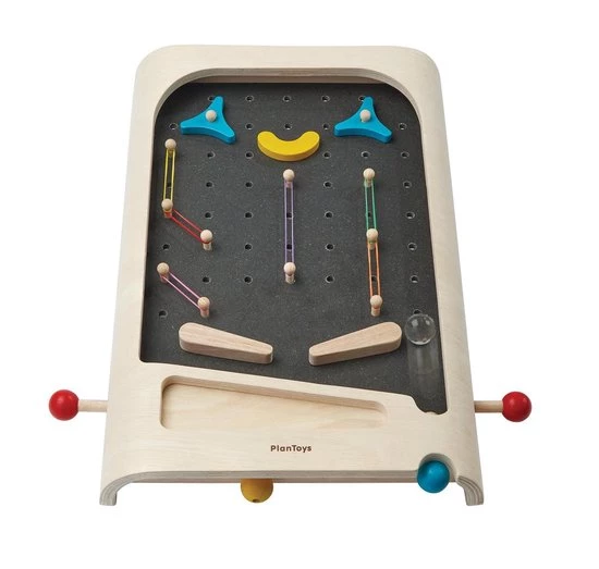 Haal je eigen houten flipperkast in huis zodat je elke dag kan spelen. Trek aan de blauwe hendel om de bal weg te schieten en het plezier kan beginnen. Hou de bal zo lang mogelijk in het spel met de 2 rode flipperhendels. Met de bijgeleverde houten kegels, rubbers en 2 stervormen kan men het speelveld steeds veranderen, zodat het spel altijd een uitdaging blijft.