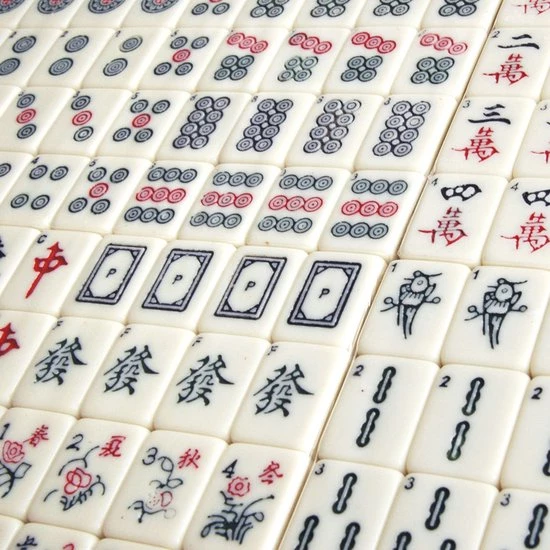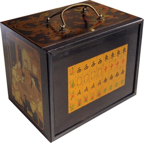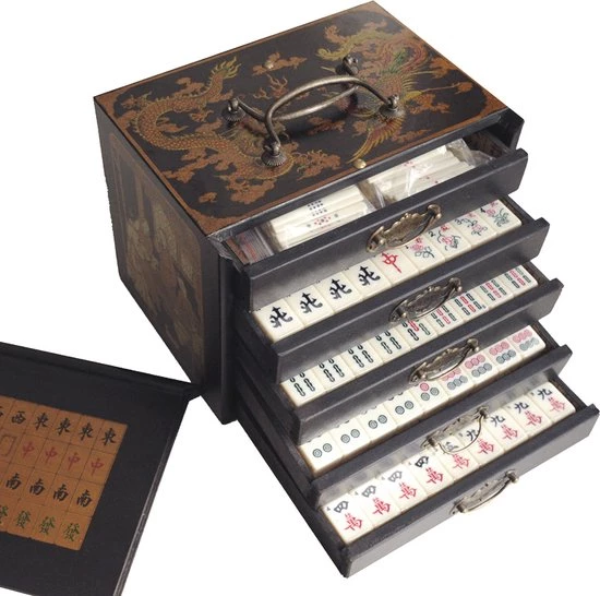 Mahjong in houten kist met vijf lades