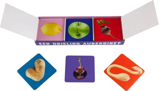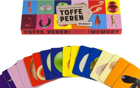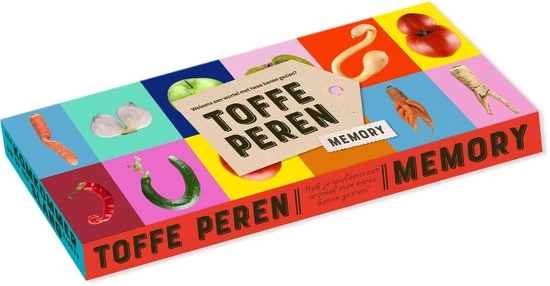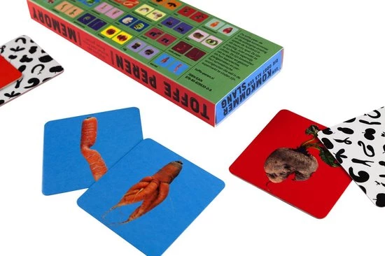 De toffe peer, de kronkelige komkommer en de aubergine-drieling spelen de hoofdrol in dit memory spel. Ze zijn prachtig. Juist omdat ze er zo heerlijk eigenwijs uitzien. Ze zijn bovendien net zo lekker als hun kaarsrechte, gladgestreken en perfect symmetrische soortgenoten die w?l in de supermarkt te vinden zijn.