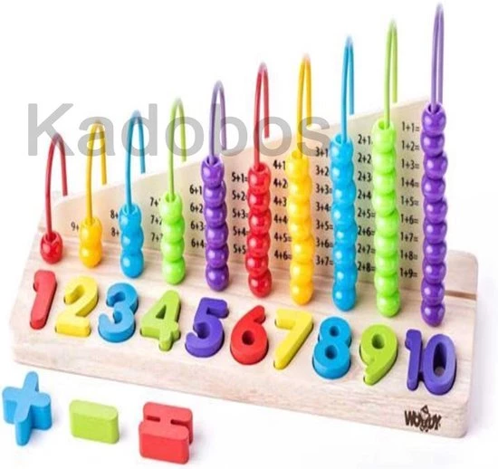 Leer optellen en aftrekken op een leuke manier om zo het rekenen onder de knie te krijgen. Dit kan via de bogen maar ook met de bijgeleverde houten cijfers en rekenfuncties.
