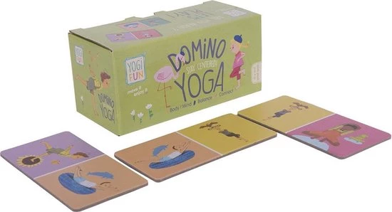 Domino YOGi is gebaseerd op het klassieke domino spel, met de toegevoegde waarde van verbinding tussen spelers ? elke keer dat een dubbele dominosteen verschijnt ? doet iedereen de pose, verbindende armen, benen, tenen of neus! Het maakt het super leuk en fysiek uitdagend (en verbetert het gevoel van competentie) omdat alle houdingen evenwicht vragen.